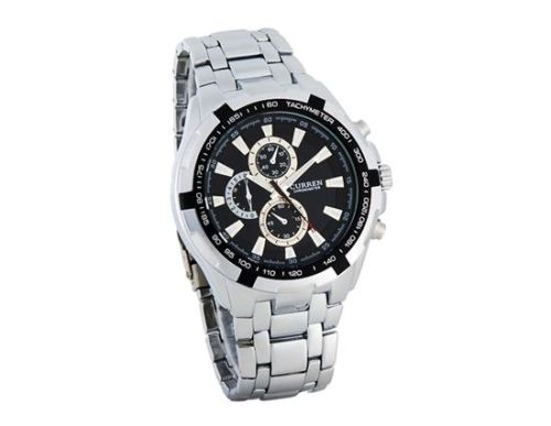 CURREN 8023 Men's Round Dial White Stainless Steel Strap Watch (Black) M.