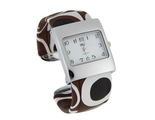 - 不锈钢表带布满了时尚的花纹布,配戴舒适。