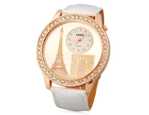 塔设计防水石英机芯模拟手表与仿皮带(白) M.
