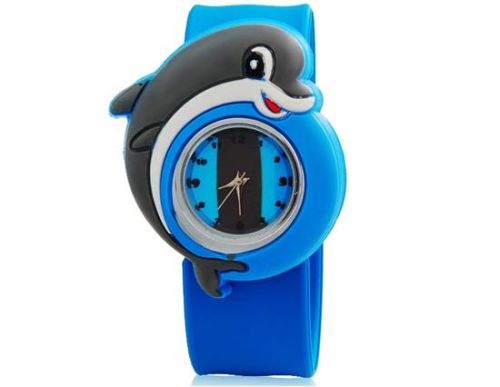 儿童可爱的海豚设计手表与塑胶表带(蓝色) M.