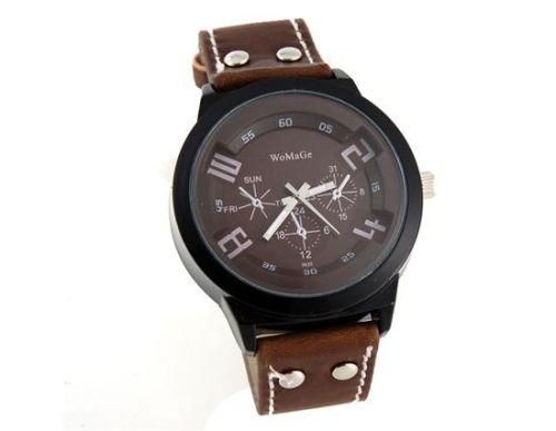 WOMAGE 9622时尚圆形PU皮男士电子手表M.
