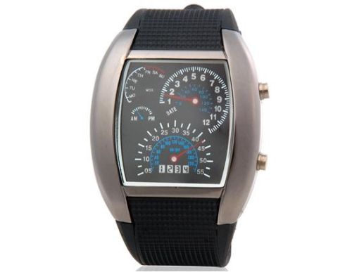 HotItemJapanese运动赛车仪表盘设计扇形LED手表与塑胶表带(黑色) M.