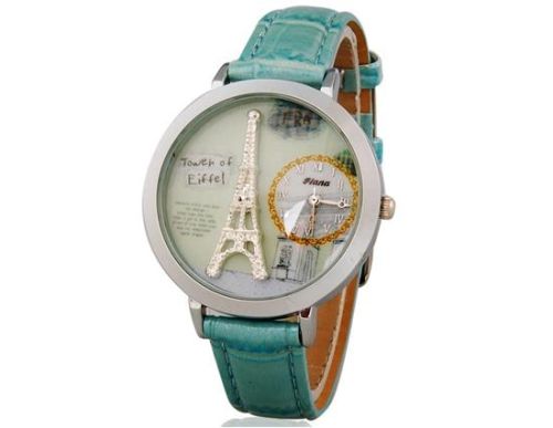 女子埃菲尔铁塔模拟手表与仿皮表带(蓝色) M.