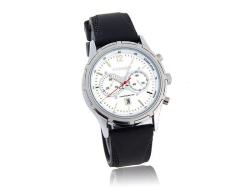 CURREN 8066圆形表盘PU皮革带男士腕表与日历(白色) M.