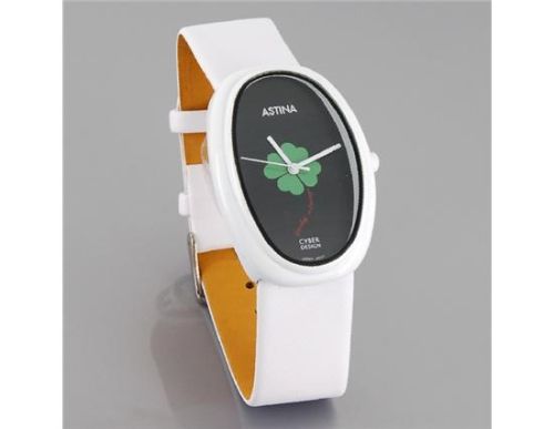 椭圆形四叶草图案表盘PU皮革带手表(白) M.