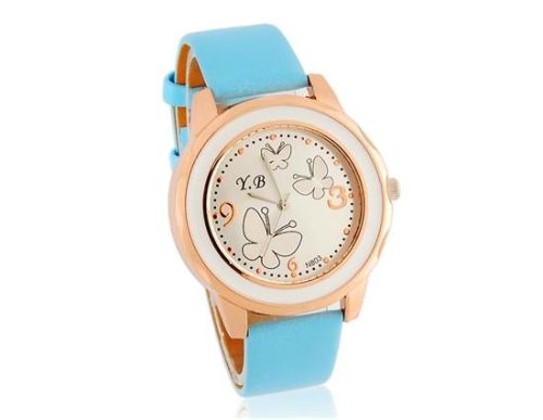 N803蝴蝶圆形表盘女装石英电子手表与PU皮表带(蓝色) M.