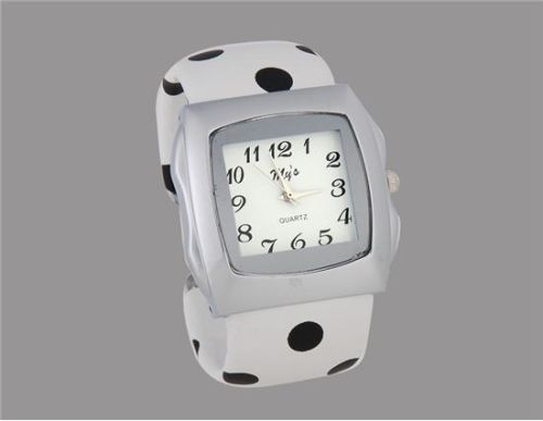 时尚方形案例模拟手镯手表 (白色) M。