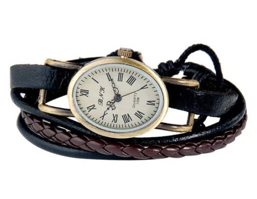 复古青铜合金及皮革手链石英表(棕色和黑色) M.