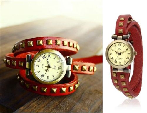 | Rivet decorated watch with three-loops and cowhide bracelet strap A good ornaments on your wrist Comfortable to wear | |