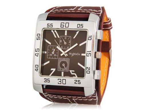 耐水运动模拟石英表与人造皮革表带 (布朗) M。