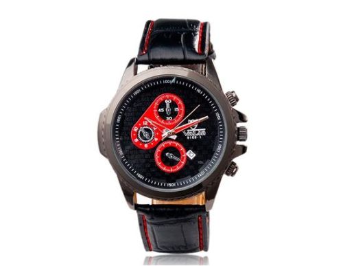 | This analog watch with faux leather strap is suitable for many occasions | |