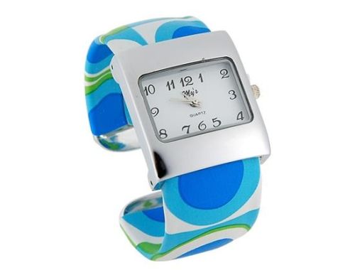 方形手表表盘时尚图案布盖表带女装手链表(蓝色) M.