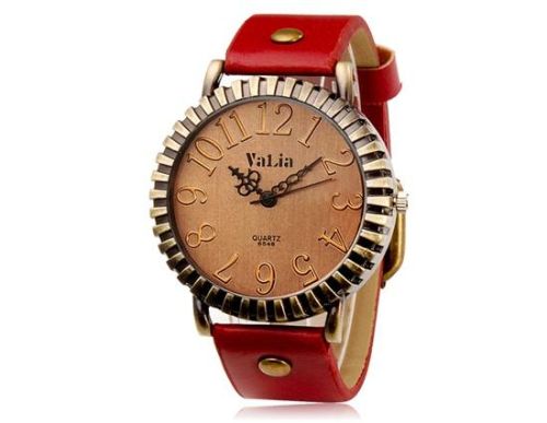 VaLia 6548复古的圆形表盘模拟手表与仿皮带(红色) M.