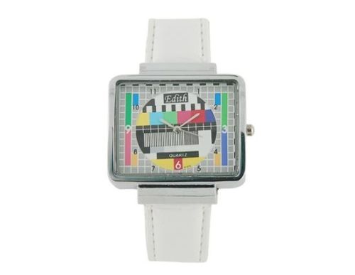 TV Set Design Leather Band Quartz Wrist Watch (White) M.