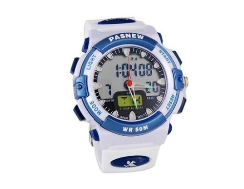 PASNEW 048C塑胶电子石英机芯LED体育模拟手表与日期灯(白) M.