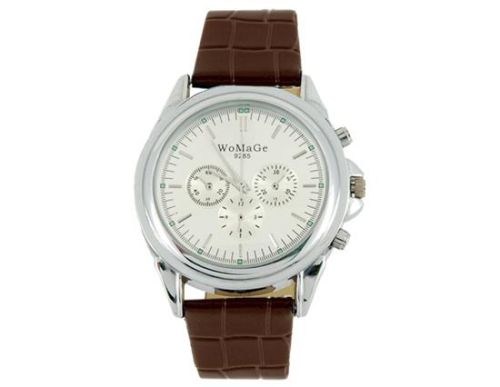 Womage 9285 Second hand Separate Design Leather Band Men's Electronic Quartz Wrist Watch M.