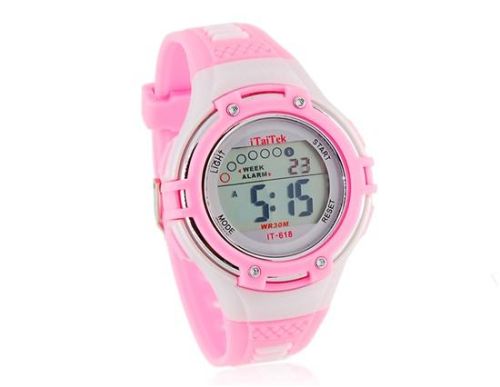 Round Dial Digital Watch with Plastic Strap (Pink) M.