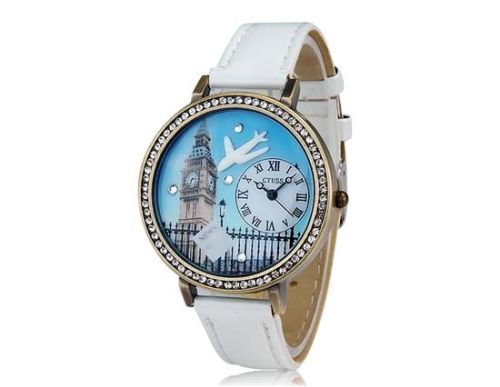 CTUSS女子塔打印的圆形表盘模拟观看与水晶装饰(白色) M.