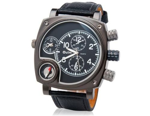 双石英机芯模拟运动型手表与人造皮革表带,指南针(黑色) M.