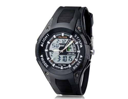 | Classic round dial design and analog & digital display Fits both men and women Features AL35 movement, plastic case and TPU rubber strap Water resistant to 5ATM Anti-shock function Supports time, date and week display, time bar, alarm clock, snooze setting, second count, 12-hour/ 24-hour time setting Equipped with a backlight for convenient reading | |