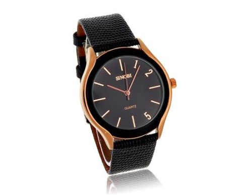 SINOBI 9220方形表盘PU皮革带男士模拟腕表(金) M.