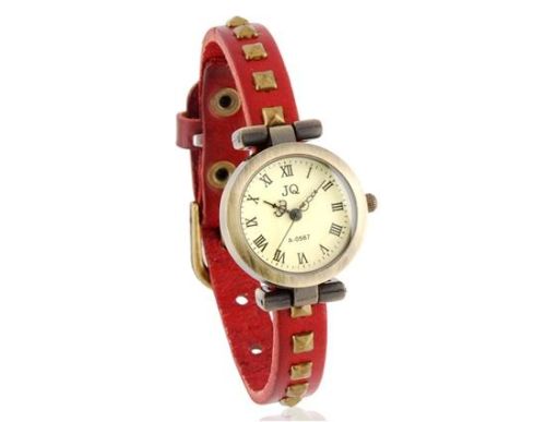 圆形表盘复古模拟手表铆钉装饰皮带(红色) M.