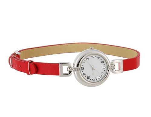 威利斯Y002S女子银色表壳红色皮表带手表(红色) M.