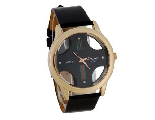 时尚骨架拨号人造皮革带男装模拟手表(黑色) M.