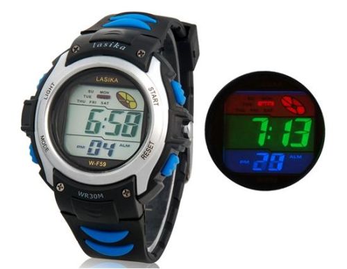 耐水数字手表与塑胶表带(银) M.