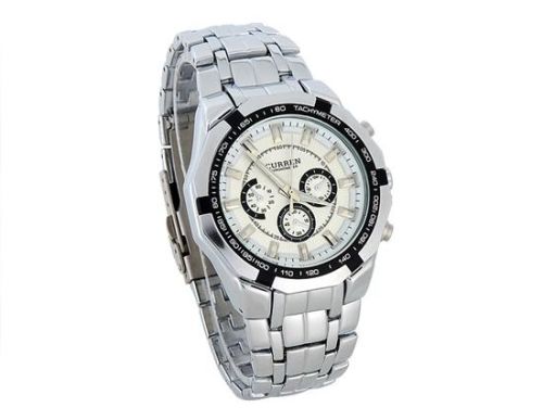 CURREN 8084圆形表盘钢带男士腕表(白) M.