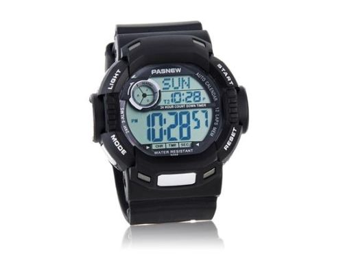 PASNEW 319蓝色背光双运动塑料数字运动手表(黑色) M.