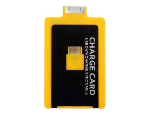 | Ultra-thin design with 3 mm thickness Directly charges your iPhone 4/4S, iPad 2, The new iPad or iPod Touch 4 Can be used to transfer data Card shape for ease of carrying | |