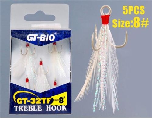 Feather decorated treble hooks