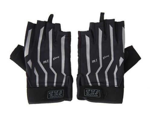 莱卡和皮革半指自行车/自行车手套(黑)