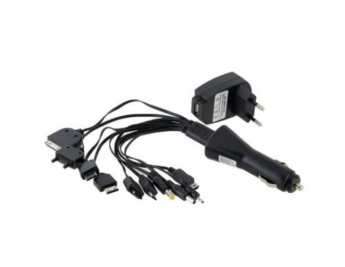 2C-001 Car Cigarette Lighter Charger + USB Charger + USB Cable with 10 Adapters Kit (Black)