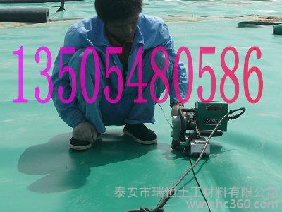 黑绿双色土工膜| 黑绿土工膜厂家| 黑绿土工膜价格| 黑绿土工膜铺设焊接施工. (135马0548振0586泉) 国内专业的土工膜, 复合土工膜, 膨润土防水毯, 土工布制造商, 为您提供土工膜铺设, 土工膜施工-中国土工膜厂家-瑞恒牌土工膜广泛应用于人工湖防渗, 垃圾填埋场库区防渗, 河道防渗, 化工污水池防渗, 水产养殖池防渗, 油罐基础防渗, 垃圾填埋场封场防渗, 尾矿坝渣场防渗沉淀池防渗, 油田井口污水防渗, 盐场晒盐卤水池防渗, 海水养殖等防渗工程. 土工膜厂家首选泰安黑绿HDPE土工膜, 土工膜质量瑞恒最优. 黑绿土工膜是聚乙烯等高分子材料吹塑而成, 根据生产原料可分为低密度聚乙烯 (LDPE) 土工膜, 高密度聚乙烯 (HDPE) 土工膜和EVA土工膜等, 该类产品强度高, 耐老化, 焊接性能好, 施工方便. 主要用于渠道防渗, 江堤水库, 湖坝, 地铁, 垃圾填埋场等工程. 黑绿双色土工膜| 黑绿土工膜厂家| 黑绿土工膜价格