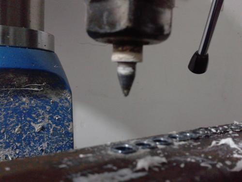 二, 此后, 每钻2-3个孔后, 加少量热熔膏于旋转的热熔钻头上.