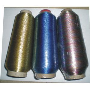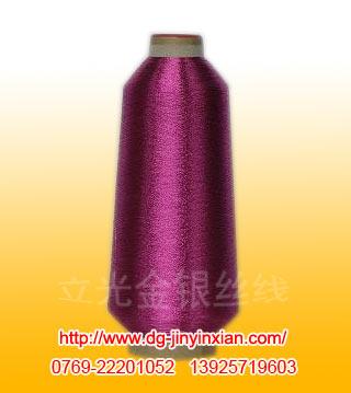 MS型 金银绣花线 颜色繁多, 色泽华丽. 一般金银线宽度为1/69 1/100, 是用金银线与其它纤维如 (与涤纶; 锦纶; 人造丝; 棉纱等纱线完全包缠而成) 600D, 150D 120D或75D等纤维合并而成.