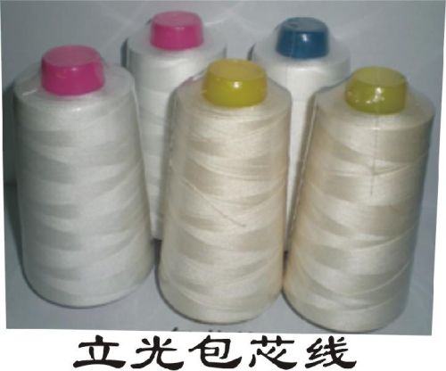 涤纶包芯缝纫线是采用涤纶长丝外包涤纶短纤维的方法制成的. 该产品既具有涤纶长丝缝纫线的高强度, 适合于高速缝纫; 又具有涤纶短纤维缝纫线的自然毛羽和手感, 能够满足服装面料的风格 .