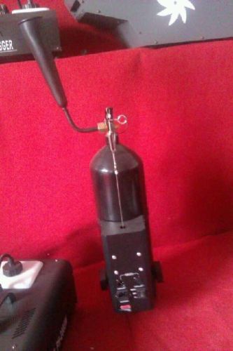 二氧化碳气柱机, 充装二氧化碳气体, 支持DMX-512国际标准信号控制. 有效地限制气体的喷射, 令烟气稍纵即逝. 制造惊喜的动感舞台 技术参数: 电压: 220V-240V/ 50HZ 110V-120V/ 60HZ 颜色: 黑色 功率: 100W 存气量: 5KG 控制: DMX512/ 线控