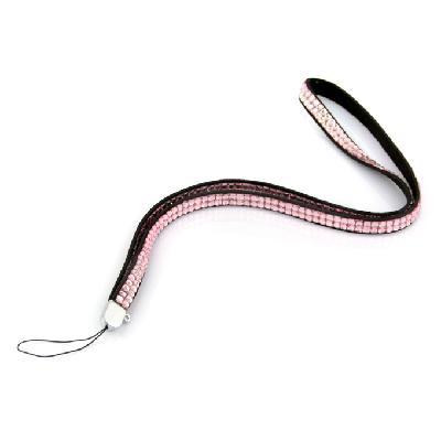 This strap Lanyard is covered with two rows of pink rhinestones.