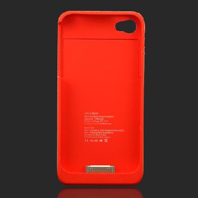 1900mAh External Backup Rechargeable Battery Charger Case Cover For iPhone 4 4S Red