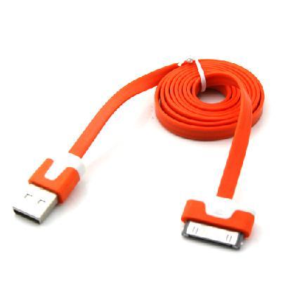 ORANGE Noodle Flat USB Sync Data Charger Cable Cord for iPhone 4S iPad 2 iPod