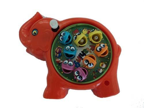 This is a go fish challenging game for children ages 4 and up. The object of the game, which includes 8 fish and 2 magnetic poles and a wind-up game board, is to grab the most fish as the board spins! The board is an elephant shape. Wind it up and see who can catch the most fish.