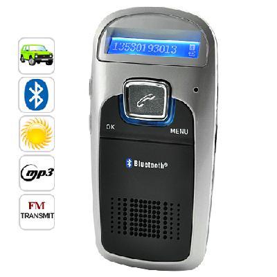 - Primary Function: Solar Powered Handsfree Bluetooth Car Kit + FM Transmitter + MP3 Player