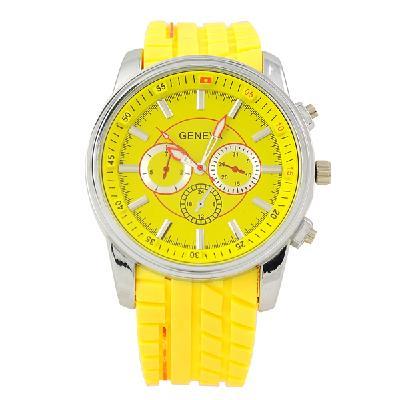Men's Women's Round Face Rubber Analog Quartz Movement Wrist Watch