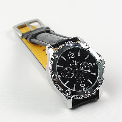 新款男士石英外贸皮带手表 黑白色