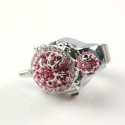 银色镶钻粉钻小海龟 戒指手表