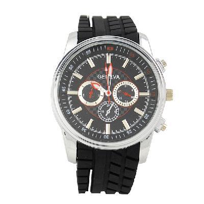Men's Women's Round Face Rubber Analog Quartz Movement Wrist Watch