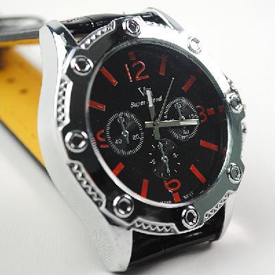NEW Boys Men's Quartz Leather Belt Wrist Watch Black with Red